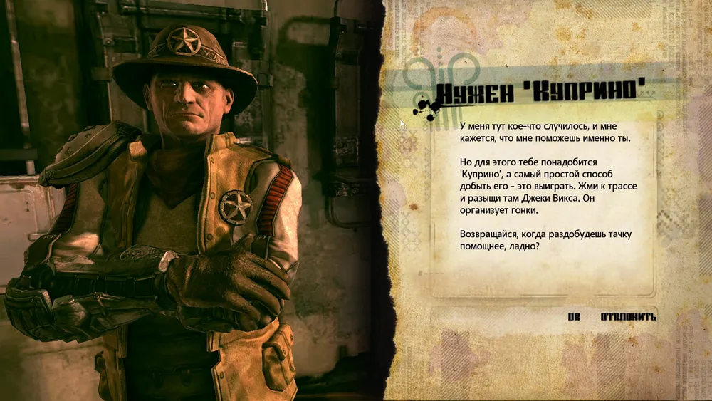 Для этого идём к распорядителю гонок. Он говорит, что нам нужен спонсор и даже расскажет кого лучше выбрать. Это Стильс, он снимает шоу "Убей мутанта". Он согласится стать нашим спонсором, если мы поучаствуем в его шоу, тем более он нам заплатит. Всего в этом шоу будет 5 раундов. В каждом раунде на вас будут лезть враги и после раунда вы будете получать деньги. В 5 раунде вас ждёт босс. Помесь кракена с супермутантом из Fallout 3. После победы над ним, вас сфотографируют на память и Стильс станет вашим спонсором на гонках.