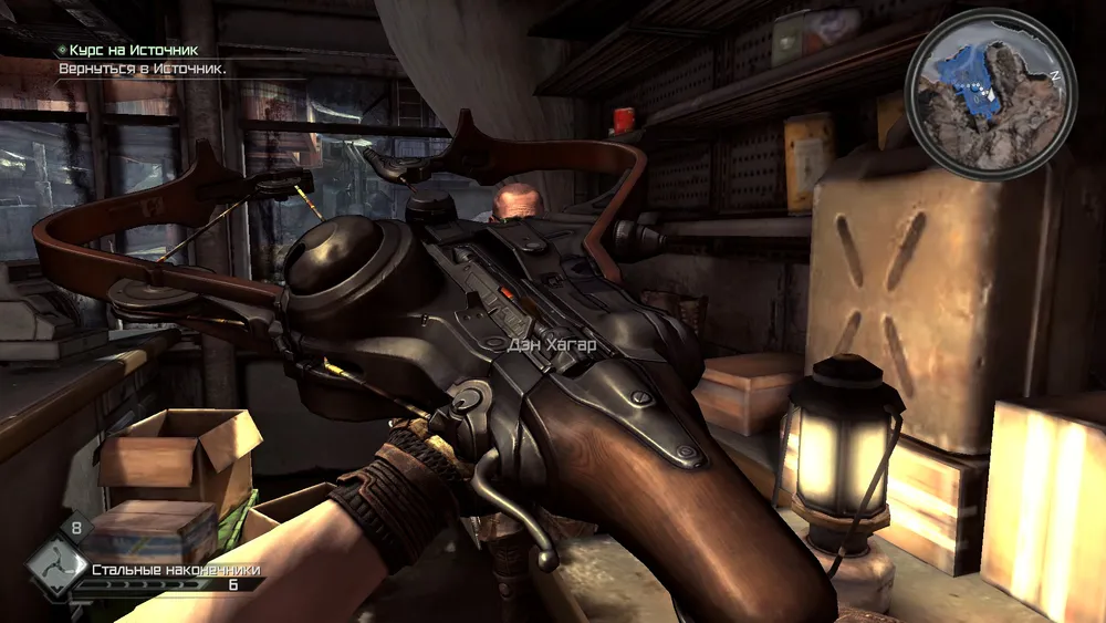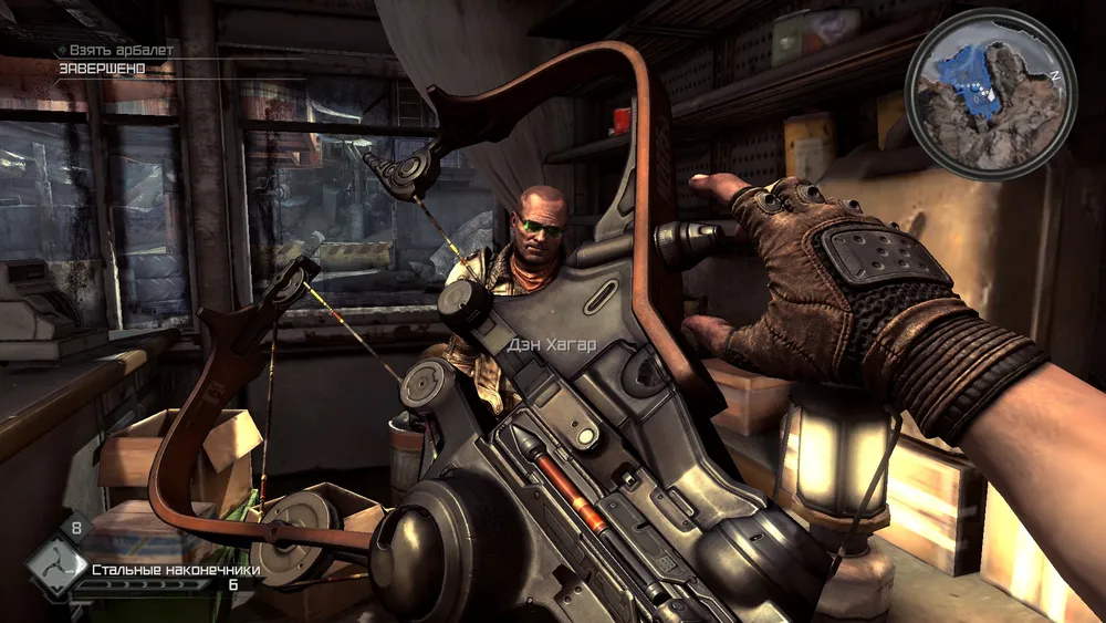 Купив пулеметы, идём к Шерифу и забираем припасы. Всё можно возвращаться к Дэну. В награду за выполненное задание, Дэн подарит нам новехонький арбалет.