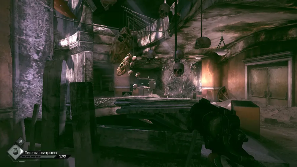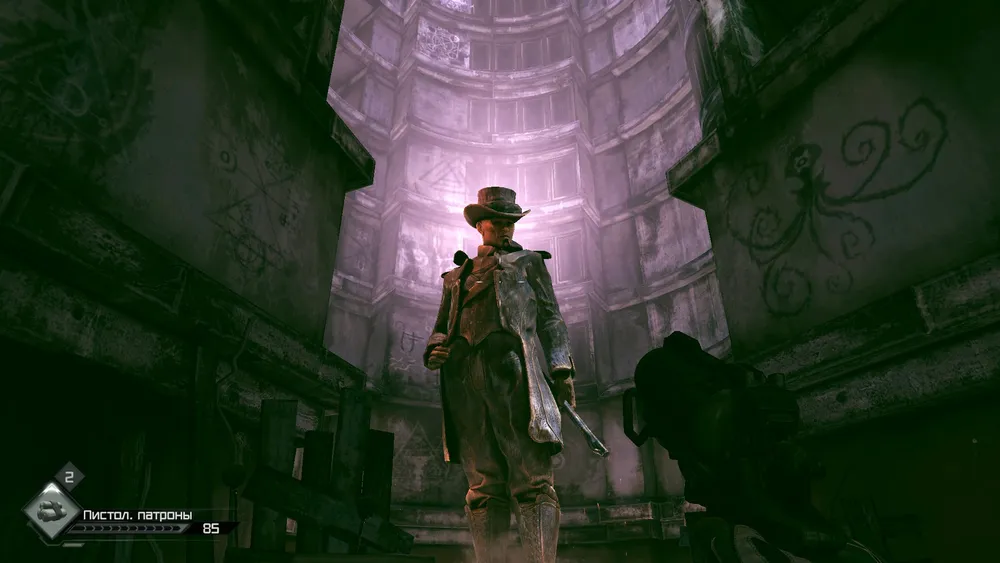 Спускаемся вниз по лестнице и нас атакует мутант, вот он замахивается для последнего удара, но его пронзает пуля, а потом и следующего спасителя.