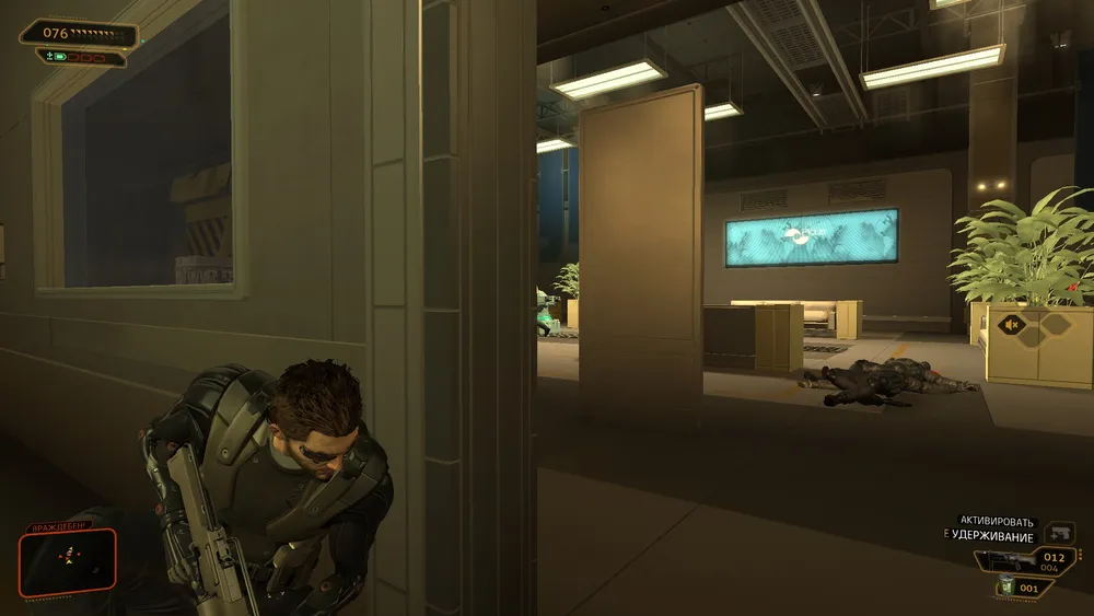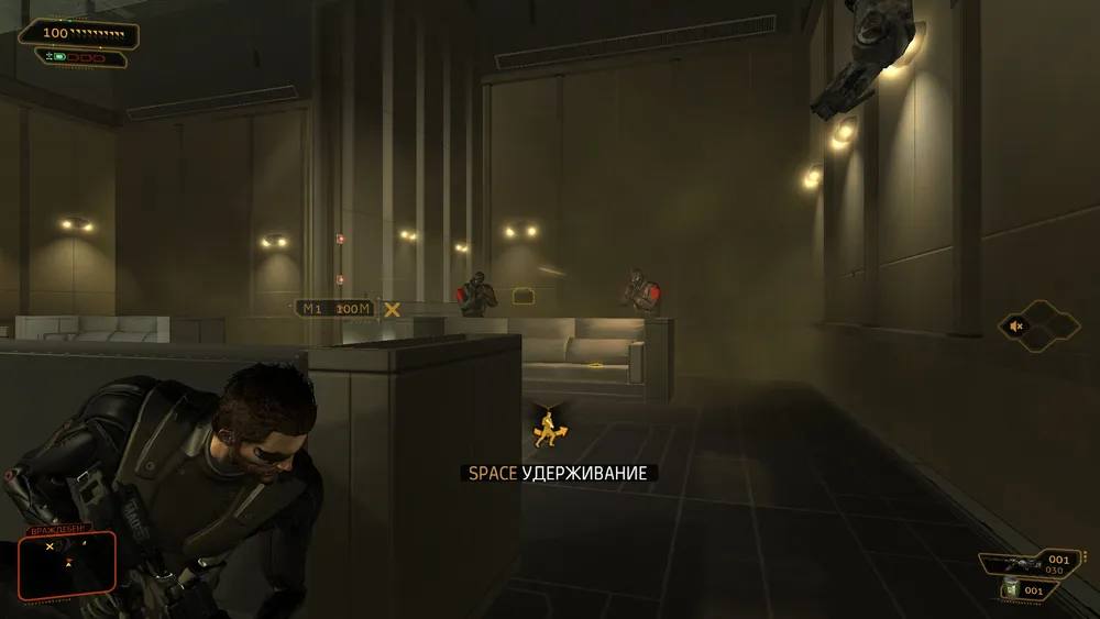 Выходите в холл, и решайте как будете проходить через них. Напролом или скрытно? Выбор за вами. Ну а я решил пойти напролом.