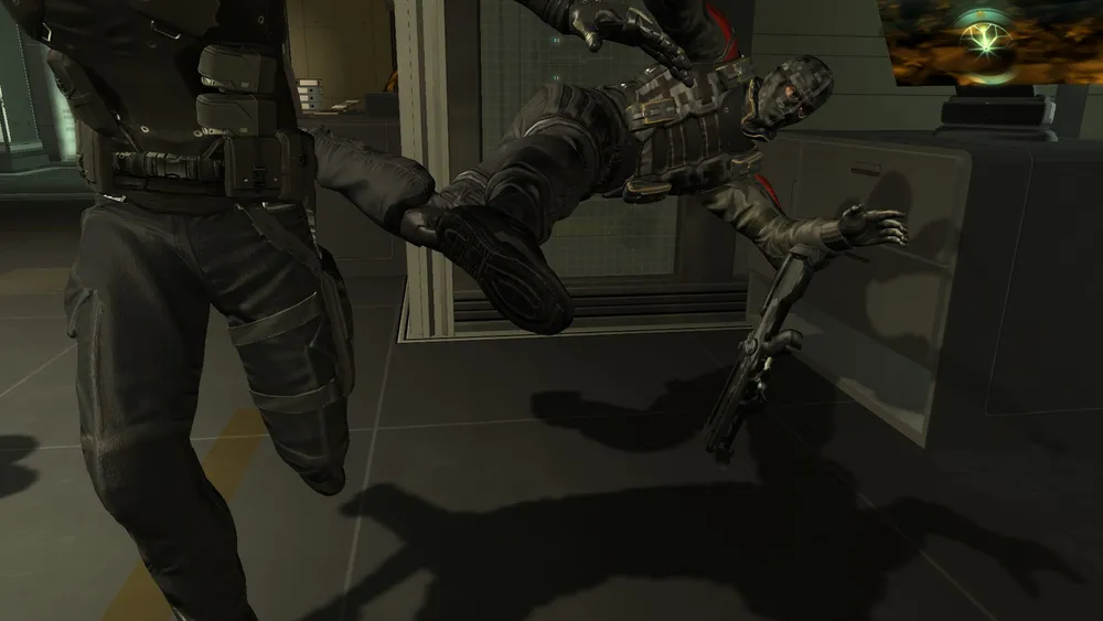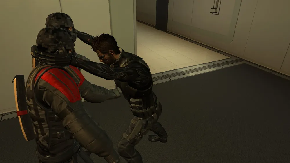 Перебив всех охранников, я пошёл на следующий этаж. Там меня ожидали парочка простых наемников, две невидимки и один робот.