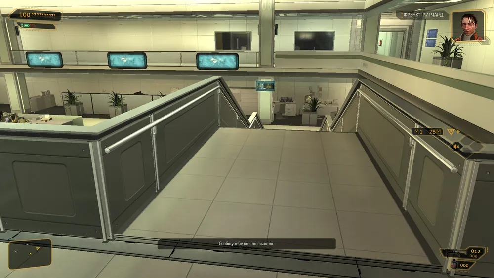 Выйдя из вертолета, ждём пока он улетит. И бежим до двери, взламываем её, пролазим по вентиляционным шахтам и выходим в главный холл "Пик Индастриз".