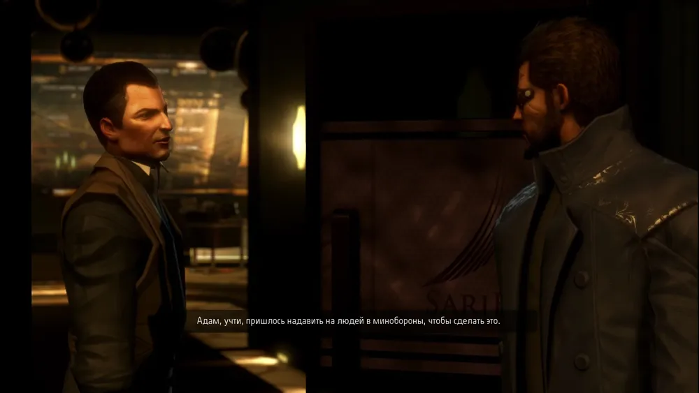 Придя в "Фонд Человечества", мы узнаем, что Исайя уже давно сидит у себя в "убежище". А Таггарт толкает речи, о том какой Адам Дженсен плохой и что "Sariff Industries" выращивает клонов (уж не Капитана Америку ли?) Вам предстоит с ним разговор. Если вы уговорить его сказать правду, то получите за это ачивку. После этого он позовёт вас за кулисы и там скажет адрес Исайи.