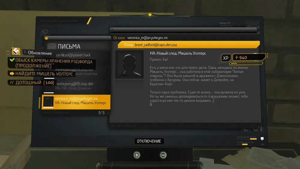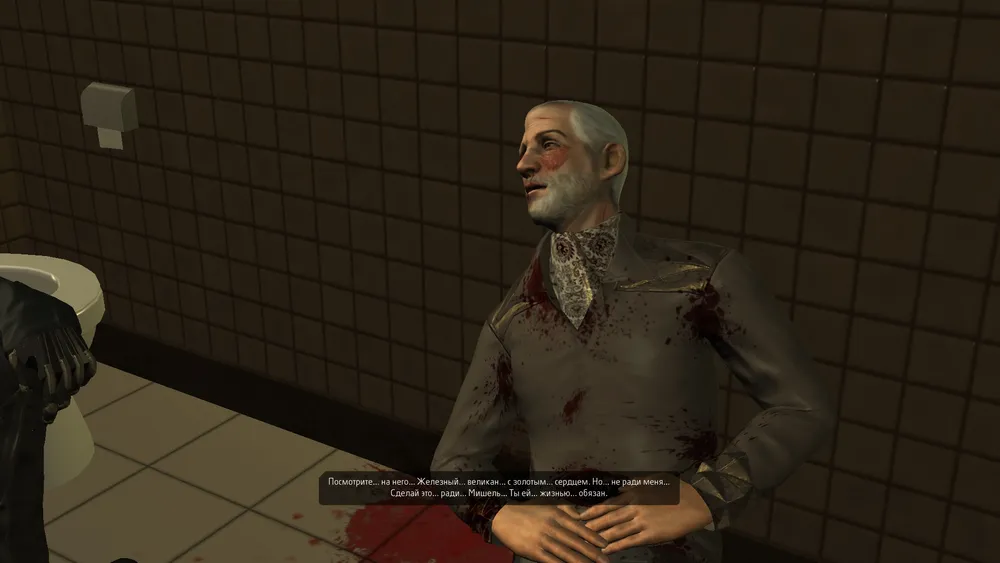 В ходе разговора он упомянет какую - то Мишель, и скажет где хранится вся найденная информацию. И напоследок попросит вколоть летальную дозу морфина. Соглашаемся и вкалываем. В копилку упала ещё одна ачивка.