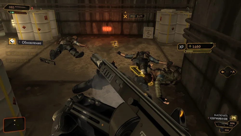 Идём в хранилище, на которое он нам указал, там уже сидят 4 агента. Вырубаем их, снимаем с одного из них код. Открываем хранилище и забираем оттуда фотографии маленького Адама (он такая няшка, не правда ли? ^_^) После этого лезем в терминал и наконец то узнаем про Мишель.