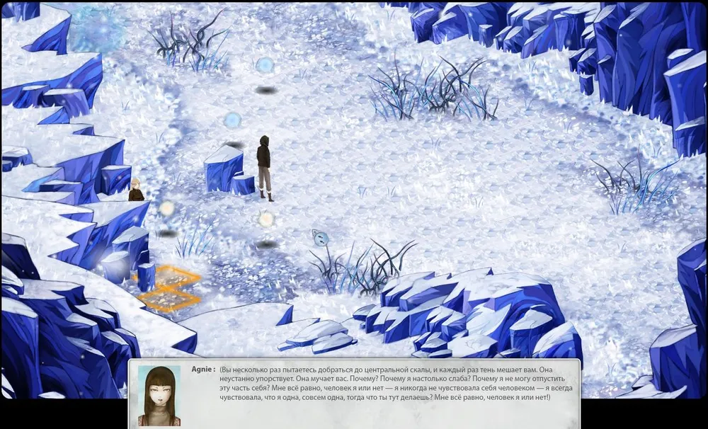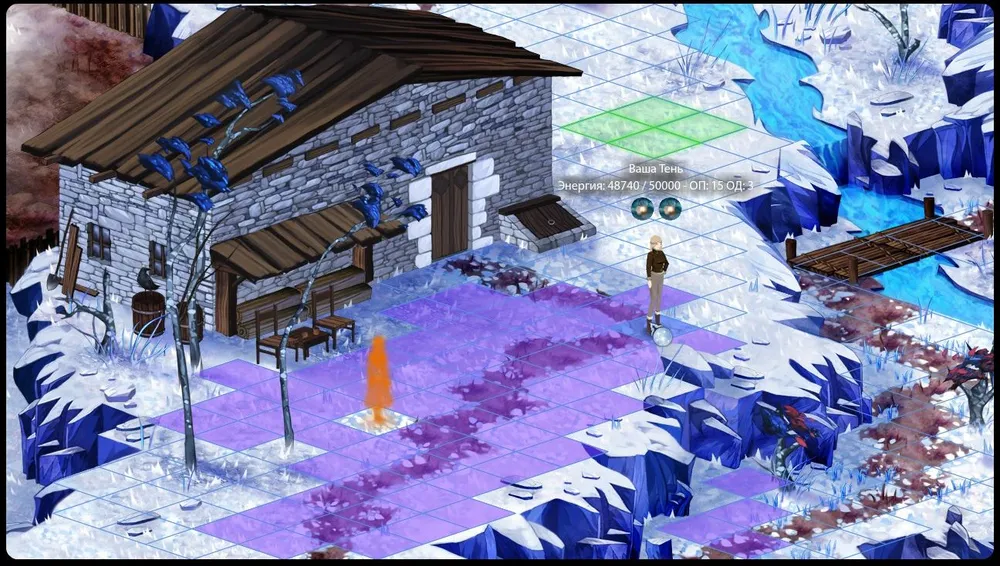 В начале пути, в левом нижнем углу, ваша тень будет тянуть вас обратно, пока вы не выйдете на открытое место. Можно отгородиться от нее союзником. Но когда вы выйдите на открытое место, вас будут постоянно отталкивать в нижний правый угол Метели, что делает прохождение чрезвычайно трудным. Вам нужно будет воспользоваться местностью, чтобы вас не сносило и сэкономить MP каждый раз.
