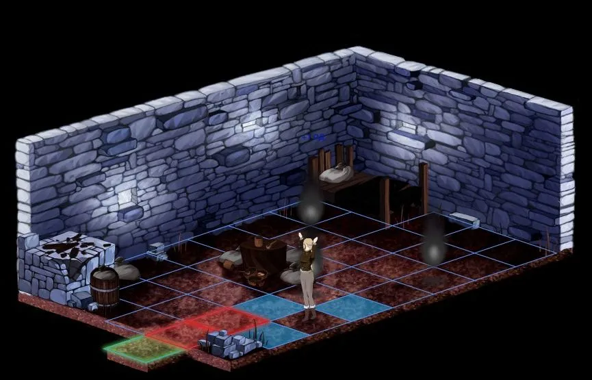 Есть 4 плитки, на которые надо наступить, чтобы продолжить чтение недостающих страниц. Если вы хотите получить достижение “Through Blood & Writings”, необходима способность, которая даст вам дополнительные очки движения (MP), в противном случае, вы не успеете достичь всех плиток за нужные 10 ходов.