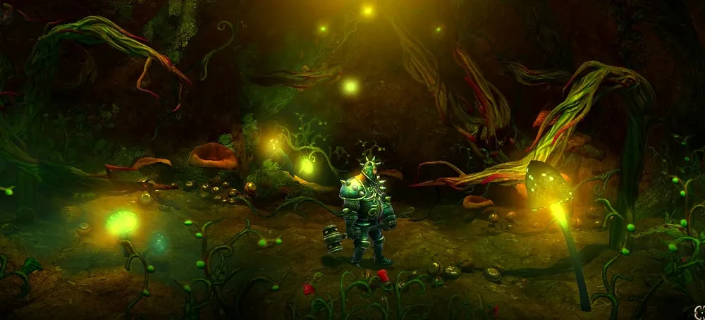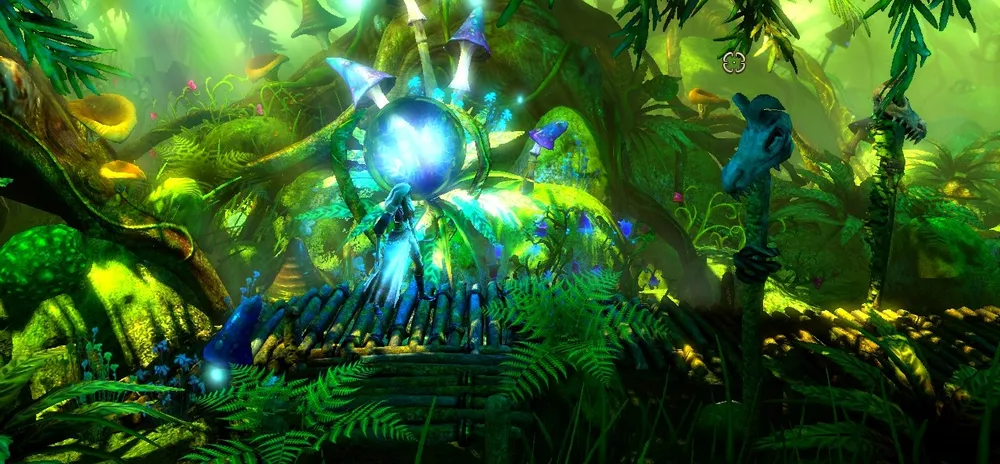Новый уровень, все 3 героя вместе и у вас наконец есть возможность играть за любого персонажа, попутно меняя одного за другим (верхние 1, 2, 3). Идем вперед. Наверху видим качающееся дерево, цепляемся на него с Зои и прыгаем на другую сторону. Далее почти такая же ситуация, только с Зои прыгнуть уже не получится. Создайте Магом ящик внизу и просто прыжком переберитесь на ту сторону. По желанию убейте сорняк, но он нам не мешает, можно и оставить. Продвигаемся дальше. Вы увидите наверху льющуюся воду, но нужно заставить литься ее в правую сторону. Для этого прицепитесь с Зои на правую сторону и повесите немного, пока вода не польется и не вырастит большой гриб. Перебирайтесь на этот гриб и создайте на нем ящик, чтобы прыгнуть на ту верхнюю полку, куда, собственно, льется вода. Впереди снова цветок, который нужно залить водой. На левом конце дерева перед цветком создайте ящик, чтобы вода текла вниз. Если ящик падает, не забывайте, что правой кнопкой мыши Маг может его держать в воздухе. У нас на глазах растет большое растение и мы спокойно можем идти вперед с прыжками. Сразу же видим стену, которую сломает рыцарь и за ней опасная территория. Осторожными прыжками доходим до другой стороны до булыжника. Магом поднимаете камень и опускаете, в итоге камень ломает нам проход на несколько этажей вниз. Спускаемся. Ломаем и стену и встречаемся с серьезными врагами. Эффективнее бить гоблинов рыцарем, не забывайте блокировать щитом. Расправились с уродами? Идем дальше. Висит очередная деревяшка, ставим на нее ящик. Чтобы было удобнее прыгать, ставьте правее. Прыгаем с ящика направо. Далее нас ждет растение, которое пуляются неприятной для нас вещью. Закройте его рот ящиком. Можете создать, можете взять, тот что рядом. Впереди вас ждут пара гоблинов и 2 качающихся туда-сюда камня. При первом, нужно пробежать, когда булыжник будет максимально лево, а во втором, когда он дойдет до левой стороны и начнет движение вправо. Будьте осторожны, внизу колючки. Дальше снова встреча с гоблинами, наверху один из них стреляет из лука, так что как только разобрались с нижними, берите Зои и стреляйте в ответ. Потом встретим знакомый нам цветок, которого закроем ящиком. Пройдите к шару. Наверху ящик, его можно спустить либо предварительно стреляя из лука на деревяшку на которой он стоит, либо магом направить цветок туда, только смотрите, не обожгитесь сами. Когда ящик упал, ставьте на нее второй, который справа. Прыгаете на 2 ящика и 3 создаете сами, ее нужно под углом воткнуть в иглы слева. Когда убедитесь, что она держится, прыгаете на нее и затем сразу же на правую сторону. Вперед не торопитесь, наверху гоблин с большим булыжником хочет вас задавить, так что во время успейте убежать назад. Булыжник покатился, расправляетесь с гоблином и можете спокойно на позитиве бежать вперед и прыгать по грибочкам. Доходим до огромной улитки, которая принимает душ. Придется немного обломать ее удовольствие и взять воду на себя. Переместите ящик чуть левее от верхней деревянной доски и поставьте на ящик другую доску, лежащую неподалеку. Магом заставьте воду литься в противоположную сторону, то есть к доске и ящику. И должно получиться так, что вода попадет к растению. Растение выросло? Идите вперед, улитка отойдет. Впереди назойливые гоблины, после расправы дергаете рычаг, спускаетесь чуть ниже,
