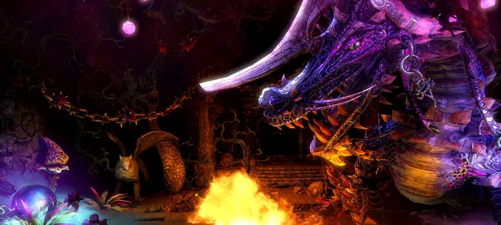 Глава начинается с лестницы, проходим по ней, ломаем деревянную стену при помощи молота. Идем дальше, прыгаем на пузырь, образующийся из зеленой жидкости, с пузыря же прыгаем на висящую платформу. Подходим к двум порталам. Берем шар, который лежит поблизости, перемещаем его на верхний портал. Шар переместили, сейчас ставим его на кнопку, где хлыщет огонь. Дверь открывается и мы можем пройти дальше. Встреча с пауком. Не бойтесь, не смотря на его рост, его убить очень просто. Расправляемся с пауком и идем вперед! Запрыгиваем на пузырь, который появляется опять же с зеленой жидкости, с него прыгаем на платформу, а с нее на выступ. Делать все нужно быстро, т.к платформа обваливается. Далее создаем ящик, ставим его на кнопку, которая открывает вращающуюся дверь и проходим под ней до ее закрытия. Ставим ящики на иглы и прыгаем. Проходим дальше, перепрыгивая через препятствия. Тут нас ждет очередная головоломка. Тот портал, что ниже, опускаем в самый низ, чтобы правая труба прямо в Портал дула, но возьмите чуть правее, так как вам туда прыгать надо и попасть. Второй портал сдвигаем вправо до упора ямы. Прыгаем в нижний портал. Если все правильно сделали, то попадете на ту сторону. Чуть впереди попадаем в комнату с колесом с огнем. Прыгаем на пузыри, с пузырей на платформу. Идем дальше, видим две поднимающиеся балки, встаем на вторую, создаем ящик и ставим его на первую балку. Поднимаемся наверх, успеваем пройти, пока дверь не закрылась. Дергаем рычаг, дверь открылась, путь свободен. Проходим вперед, внезапно появляется дракон. Конец главы.