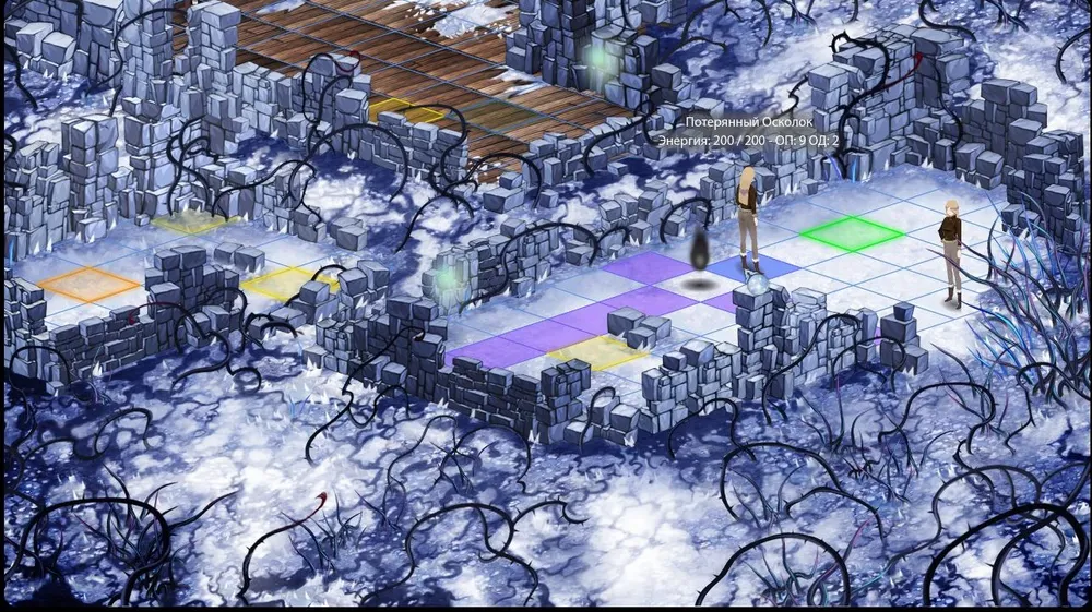 Осколок, который будет атакован, показывается за один ход желтым мигающим маркером. Увидите его, отходите от этого Осколка, если оказались рядом, используя синие и желтые плитки. Осколок – ваша копия после удара исчезает, и на карте появляется новый Забытый Осколок. Когда Осколок умирает, он убивает все вокруг себя: вас или Забытый Осколок.
