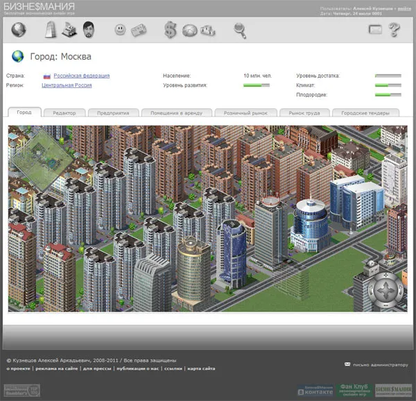 Собственно началось мое знакомство с бизнесманией в далеком 2009 году, началось все с того что в интернете случайно познакомился с одним москаликом, сидим одного вечера в скайпе ну и он такой начал рассказывать про одну браузерную экономическую игру в которую уже давно играет еще с далекого 2006 года ну и такой думаю что нужно показать москалю де зимуют раки говорю а ну дай-ка силочку, он сначала не давал говорил что мне мозгов не хватит в неё играть ну после несколько дней он все таки мне дал, поиграл я в неё 2 дня и удалил аккаунт сказавши что это не игра которая складается с одних слов и пяти картинок а фиг знает что... Ну вася в середине меня все таки хотел поиграть в экономическую игру ну и вбивши в гугел какую нибудь били бурду вышел на другую экономическую браузер игру и эта игра называлась Бизнес Мания, зареєструвавшись програвши 3 дня, примчавшийся на учебу, я еще в школе тогда учился шкетом таким был, говорю друзьям не давно такую игру нашел экономическую блин прикольная, ну и дал ссылки всем, все такие зарегистрировались и такие сидм модные, а у меня то столько магазинов, у меня то такая прибиль, ну и я такой крутой раньше всех зарегистрировался, раньше всех раскрутился такой сидел крутой, Топ 1 на учебе, но Андрюшкиное щастя длилось не долго после того как он решил пойти на большую рыбешку, по открывал заводов складов, посидел посидел и обанкротился, закрыл фирму, сижу такой со своим топ 7 на учебе блин надо же как то назад раскрутится ато будет стыдно с пацанами пиво пить, засмеют же блин... Ну и полез в всемирную великую библиотекой с романтическим таким названием "Форум" и наткнулся на очень интересное объявления от игрока Gof в котором говорил что учить новичков основам бизнесу, ну решил попробовать записатся к нему в ученики, и на следующий день уже был ево учеником, и сразу же приступили грызть гранит науки, дал мне компанию, влил туда 30 миллионов и начали сложный процесс обучения который длился 2 недели, наверное было легче научить мартышку играть на пианино чем меня чему то научить, ну все таки научил после чего подарил компанию, так по не многу с маленькой компании с одного магазинчика разрослась в большую компанию благодаря сенсею Gof после чего так у жизни повелось что пришлось забросить игру, пару недель назад перелистывая пошту наткнулся на очень интерес спам в котором было приглашения играть в бизнес манию 2 версии, решил вспомнить молодость, открыл, зарегался, поиграл 3 дня обратно такой прибегаю и говорю друзьям вам пришло письмо с бизмании ? в ответ получил нет, рассказавший о новой версии бизмании, про новые функции, про то что теперь есть строительство и что теперь города не нарисованные а построенные самими игроками что мне очень понравилось, решили тоже зарегатся и вот опять соревнуемся чья компания лучше... Пережили первый кризис кто сделал рестарт кто сделал капитал :Р, возле кавото кризис прошел мимо. И снова стабильность и снова ожидаем у кого первого сойдет поезд с рельс...