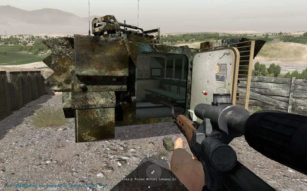 Никак. В моде PR вид только от первого лица. Не забудьте пополнить боекомплект вашей машины. По умолчанию боевая техника спавнится без патронов. Если же грузовик с боеприпасами кто-то забрал и использует как транспорт, рекомендую выключить эгоизм и оставить БТР на базе дожидаться спавна патронов. Для передвижения воспользуйтесь спичокй.