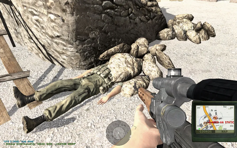 Карта Армы может быть просто гигантского размера. Самый быстрый способ попасть в нужную точку это выбрать респ в правильном месте. Респаунтися можно на ралли-поинтах сквада (если таковой установлен), фаер-базах (если построена), передовых базах (если захвачена). Бывают случаи, когда ни один из вышеперечисленных пунктов не подходит, тогда банально берем технику и колесим в нужном направлении. А если техники нет, что бывает довольно часто могу предложить вставить спичку между клавишами «W» и «2″ и идти пить чай. Главное не проспать.