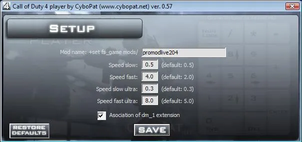 В любом поисковике - скажем, google.ru - вбиваем «cod4 demo player 0.57». Скачиваем, распаковываем куда угодно, запускаем. Жмём на кнопку Setup и выставляем всё так, как на скриншоте: