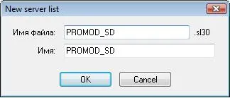 В появившемся окне вводим имя Имя файла – тут всё понятно, и Имя – название списка в интерфейсе программы, например: PROMOD_SD. Жмём ОК, список создан.