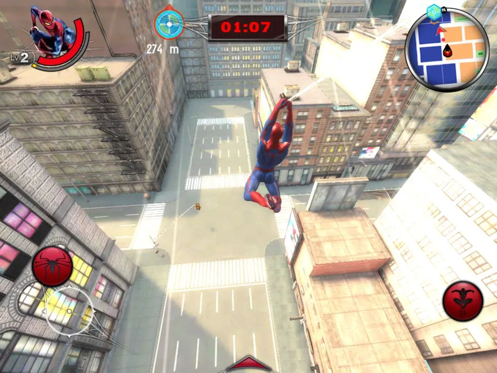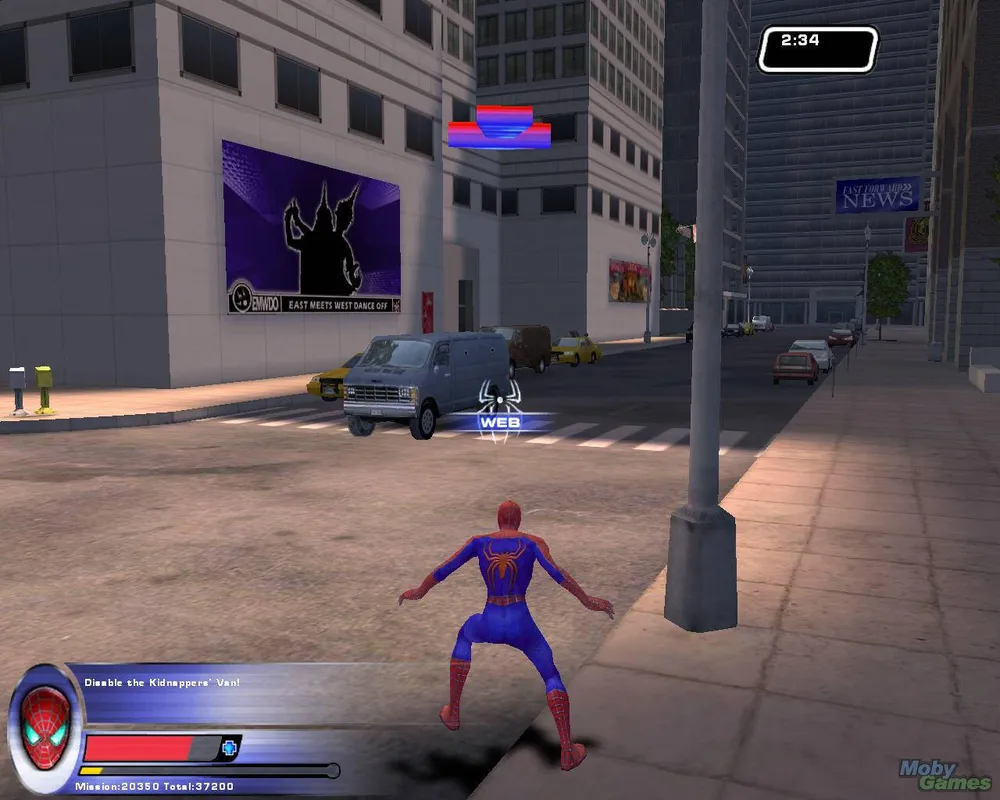 Spider-Man: The Movie для проекта по фильму получился добротным. После первой игры это был значительный шаг вперед. Здесь добавили возможность провернуть несколько «фишек» с паутиной: спуститься вниз головой, резко подтянуться выстрелом паутины на поверхность и быстро переместиться обратно, сделать перчатки из паутины и усилить свой удар и т.д. Не все и не всегда применялось в действие, но на атмосферу работало. Работало на атмосферу и возможность наконец свободно полетать по городу и почувствовать ветерок на макушке.