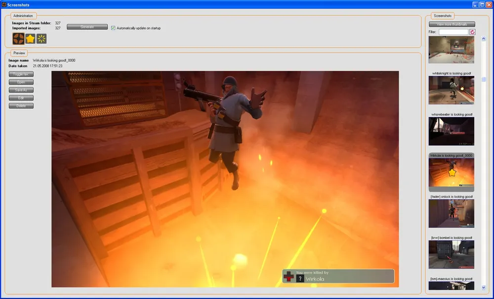 Кроме того, есть просмотр скриншотов, где вы можете просмотреть все скриншоты сделанные в процессе игры. Из возможностей конвертация изображений из TGA в JPEG, редактирование, удаление и экспорт изображений, а также создание избранного списка скриншотов.