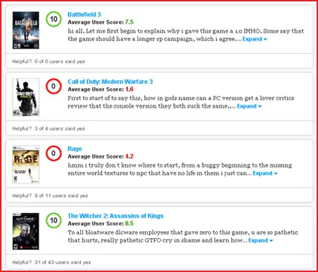 Metacritic ужесточил правила, чтобы остановить «бомбардировку обзоров» в августе 2010 года, введя обязательную регистрацию (до этого, чтобы поставить оценку, вам нужно было лишь иметь уникальный e-mail), но системой всё ещё можно злоупотреблять. И дело не только в обычном троллинге, хотя он и остаётся ключевым фактором.