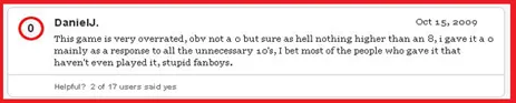 Многие пользователи Metacritic и не думают оценивать игры так, как, по их мнению, они должны быть оценены: они лишь хотят повлиять на средний балл. Если такой пользователь видит, что средний балл выше, чем, по мнению этого пользователя, игра заслуживает, он даёт ей ноль, чтобы сильнее повлиять на этот самый средний балл.