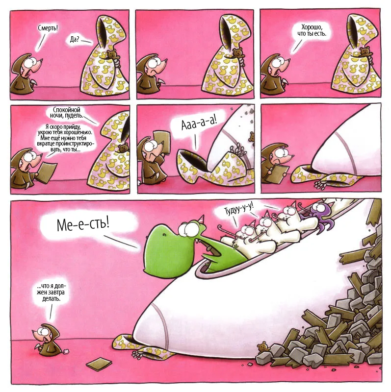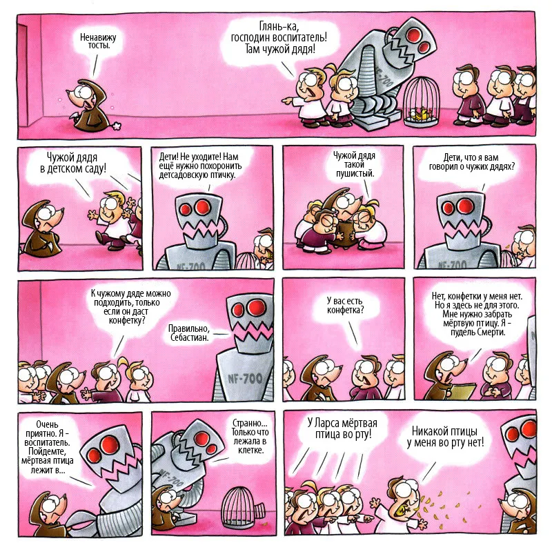 Забавная и самую малость сумасшедшая серия комиксов с абсолютно потрясающими героями. =) Это все одна история, читать лучше целиком, потому что там довольно забавные переплетения.