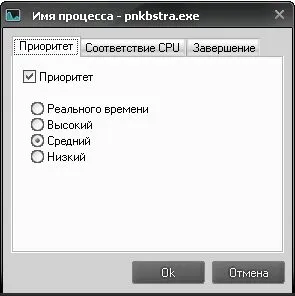 Задать смену приоритена можно выделив нужный процесс в таблице и кликнув правой кнопкой по нему, в выпадающем меню выбрать нужный статус. Если процесс запущен, то через некоторое время (1-5сек) приоритет его изменится.