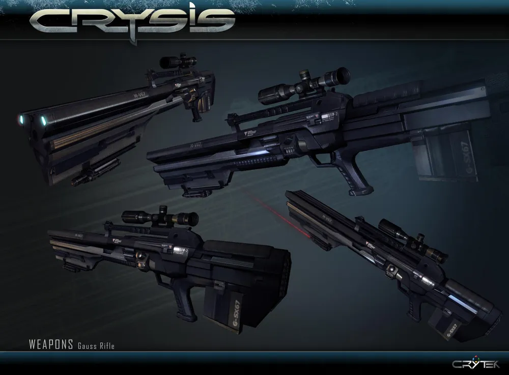 Да, опять Crysis идет первым. Здесь гауссовка имеет вид протяженной хрени, тем не менее стреляет она больно и при попадании в цель от объекта отлетает нечто что мы должны принять за ее снаряд. Ну да ладно, верим.