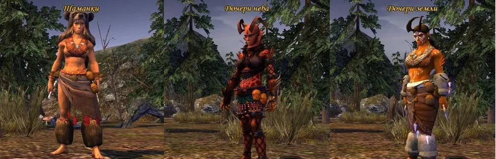 Есть и некрасивые шаманки. Ну как - не красивые... Их лица так же красивы, как и у других, да и фигурки вроде ничего, завлекают, но. Их головы венчают рога на подобие суккубьих, а кожа, как у демонесс, покрыта ороговевшими наростами. Их две ветви, два направления. Дочери неба и дочери земли. Дочери неба всецело отдали свою волю Отцу-небу, став проводницами Его воли. Конечно Силат( серебристый дракон воздуха), от которого отвернулись люди, был рад преданности новых почитателей(орков) и щедро наградил их. После жертвоприношений и ритуалов дочери неба взывают к своему покровителю, который поражает их врагов разрядами молний. Эта ветвь шаманок не использует ножи, считая, что когти, данные небом от рождения - лучшее оружие. Дочери земли напротив, используют ритуальные костяные ножи, как и обычные шаманки. Они, желая обрести покровительство Матери-земли, уходят жить в приграничные степям Ранаара пустыни, называемые "мёртвые степи". Там, в состоянии постоянного голода, днём под палящим солнцем, а ночью пронизываемые ледяными ветрами, они переходят за грани бытия. Телом они находятся среди живых, душой же блуждают по просторам мира мёртвых. Их тело живёт инстинктами, а потому, завидев пищу, стремительно бросается на неё, нанося высокий урон, дабы пригодное в пищу существо не успело убежать. Это остаётся в памяти и по возвращении домой, дочери земли уделяют меньше внимания защите, но больше нападению. Душа же, вернувшись из мира мёртвых, привносит свои особенности: так, на атакованное существо накладываются проклятия на искусном уровне магии, замедляя, ослабляя жертву или лишая её части защиты. Пережившим испытания Силанна дарит чудную особенность, неплохо дополняющую навыки и компенсирующую недостаток защиты: жертва, на которую наложено заклинание замедления, лишается возможности контратаковать их. Киган припомнил, как какой-то недалёкий варвар бросил в бой против стальных големов дочерей земли. Мало того, что на ходячие железяки не подействовало заклинание замедления, так они ещё и контратаковали после каждой атаки... Положил бы варвар тогда их всех, кабы не пришёл на помощь ему "король гоблинов" со своими кочевыми кентаврами. И лишь после того, как оставшиеся в живых шаманки порезали на куски того орка, который повёл их в бой, они объяснили Кигану о даре Матери-земли. С тех пор хитрый вождь гоблинов предпочитал видеть в своей армии только этот вид шаманок.
