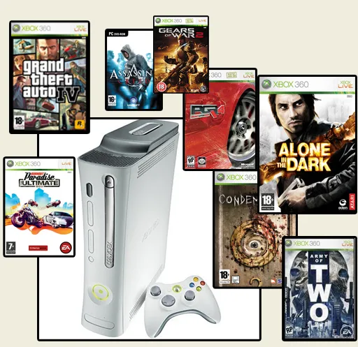 - первыми моими играми были: PGR 4, GTA IV, CoD 3, Condemned 2, Army of Two, Alone in the Dark, Burnout Paradise - и эти игры были просто великолепны... и вообще я тогда очень рад был покупке.