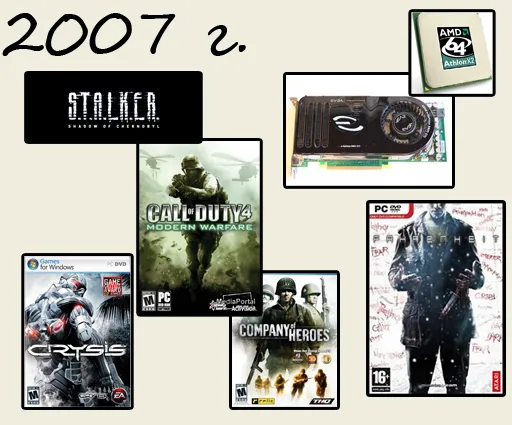 - не в один релиз прошедшего года я толком и не поиграл потому, что то железо которое у меня было ( AMD Sempron 2600+, 256MB DDR SD-RAM, nVidia FX5200 128 MB ) было больше похоже на металлолом.
