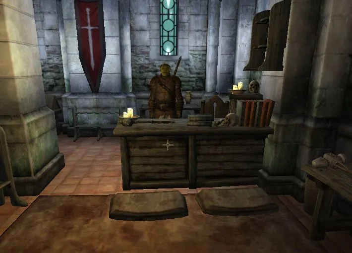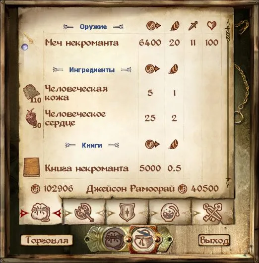 Основное здесь - книга некроманта, стоит она дороговато и если жаль денег, то можно зайти в Университет, точно такая же лежит там на столе. Если возьмете ее, это будет воровством, но вам главное ее прочитать, а после она не нужна.