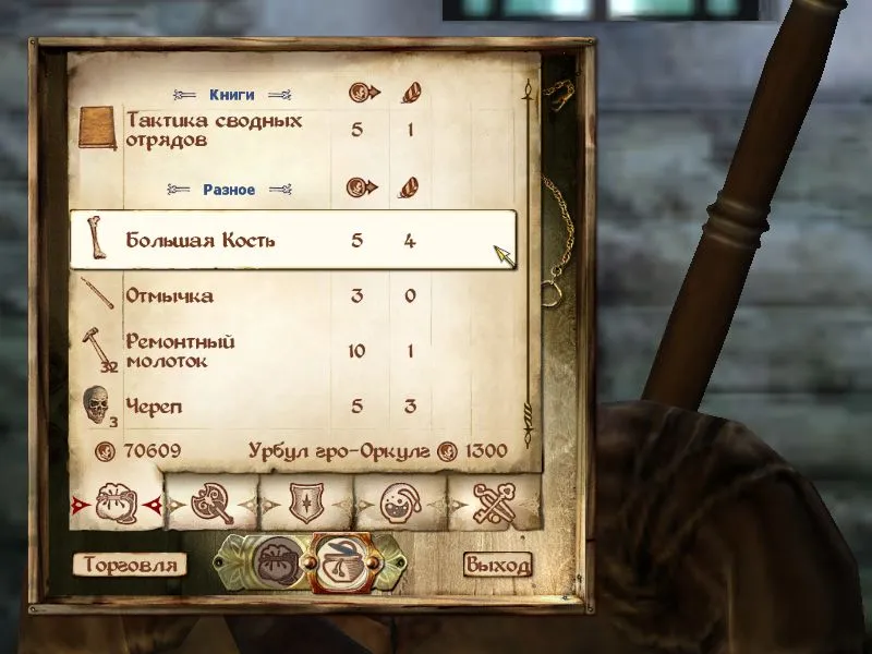 Еще одно - кости теперь в игре стоят денег, их можно как обычно найти где нибудь, но и можно купить в магазинах, там где торгуют магией или продавцы орки.
