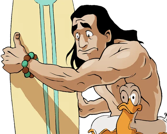 Хороший серфер обязательно должен уметь плавать. Reef является исключением из этого правила: он невероятно хорошо катается на серфе, но боится утонуть. Вместо того, чтобы отказаться от своей страсти, он оборудовал cвое снаряжение гипер современными буями. А те, кто над ним издевается, страдают от ударов крепкого Reef’а и « поклевываний » его верной утки КряКря!