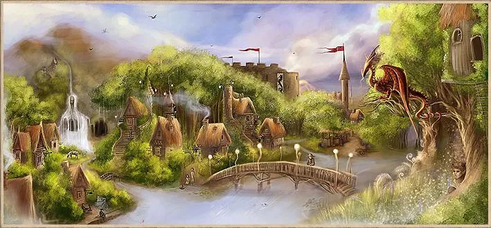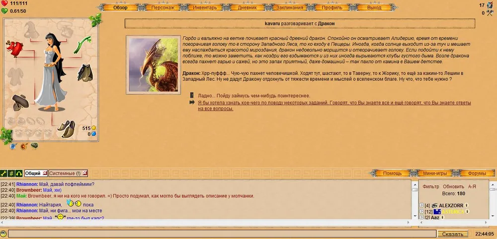 Возле харчевни расположился дракон. Хоть он и отвечает любому, кто к нему подходит, но получить задания от дракона можно только набравшись опыта.