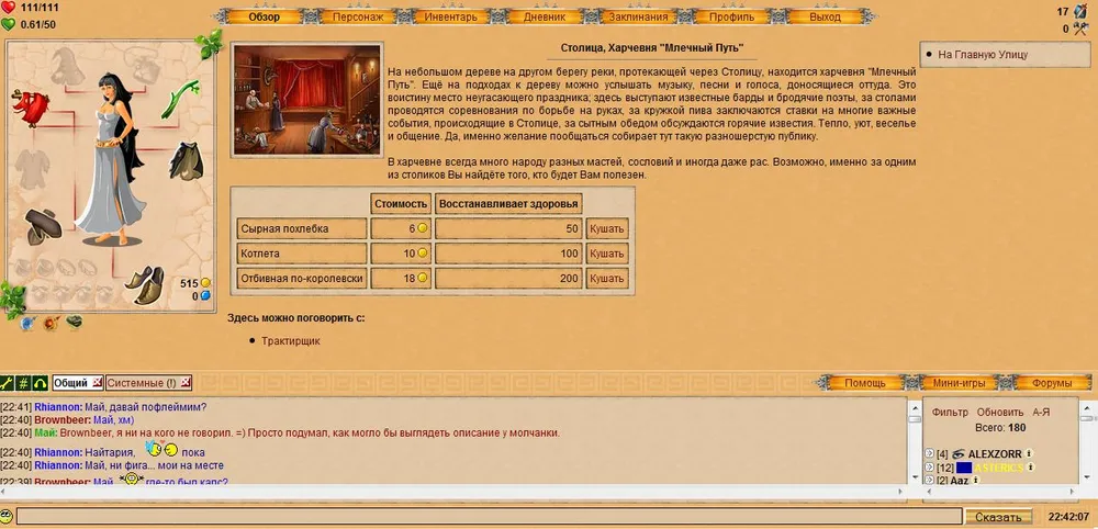 С правой стороны находится харчевня "Млечный путь". Обед в харчевне очень полезен и обладает заживляющим эффектом, хотя на персонаже и так все заживает, как на собаке.