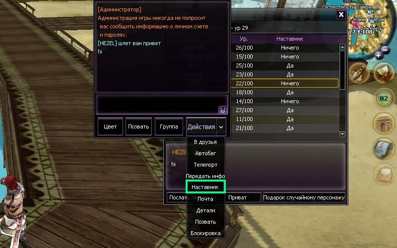 Наставником может стать любой игрок достигший 30-го уровня. В разделе [Сообщество] » [Новички] можно ознакомиться со списком новичков 1-29 уровня. В списке можно увидеть ник персонажа, его уровень и наличие наставника.