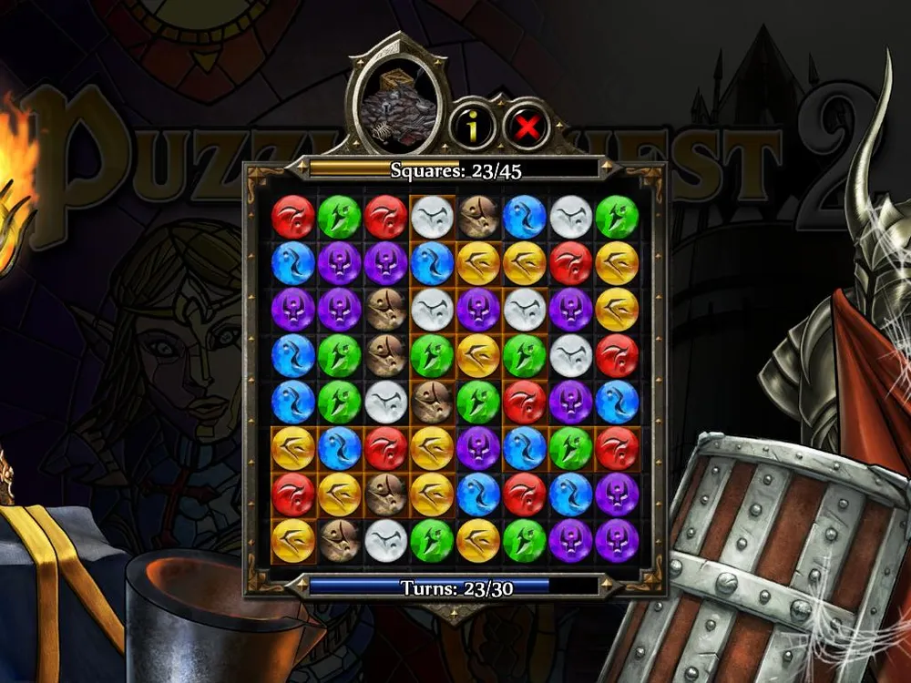 И еще будет вагон и маленькая тележка новых мини-игр, по началу очень даже ничего, но, думаю, может приесться в конце; будут новые особенности противников. Появилось разнообразие в полях боя. Меняется его размер и кроме фишек имеются каменные блоки, которые несколько разнообразят бои.