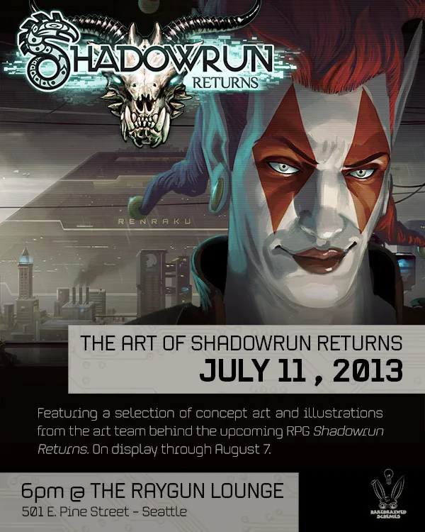 Также 7 июля состоялалась демонтсрация арт-коллекции рисунков из вселенной Shadowrun returns. Событие произошло вСиэттле в Raygun Lounge (Capitol Hill). Повторно работы художников можно будет увидеть7 августа. Ниже несколько изображений.