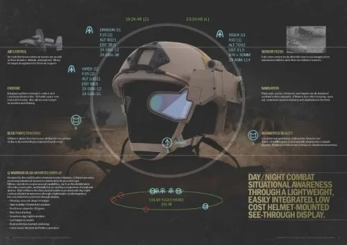 Ношение высокотехнологичных очков Google Glass заставляет людей выглядеть не очень обычно и в некоторых случаях весьма курьезно. Но использование такой технологии в военной области может превратить солдат в нечто другое, в смертельную помесь Терминатора, Универсального Солдата и Железного Человека. Свой вариант реализации технологии дополненной реальности военного назначения представляет известная компания BAE Systems. Их устройство, получившее название Q-Warrior и базирующееся на основе технологии Q-Sight, представляет собой полноцветный трехмерный дисплей, монтируемый на солдатском шлеме, который предоставляет солдату возможность "быстрой оценки и ориентирования в окружающей обстановке в режиме реального времени".