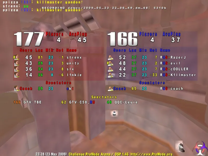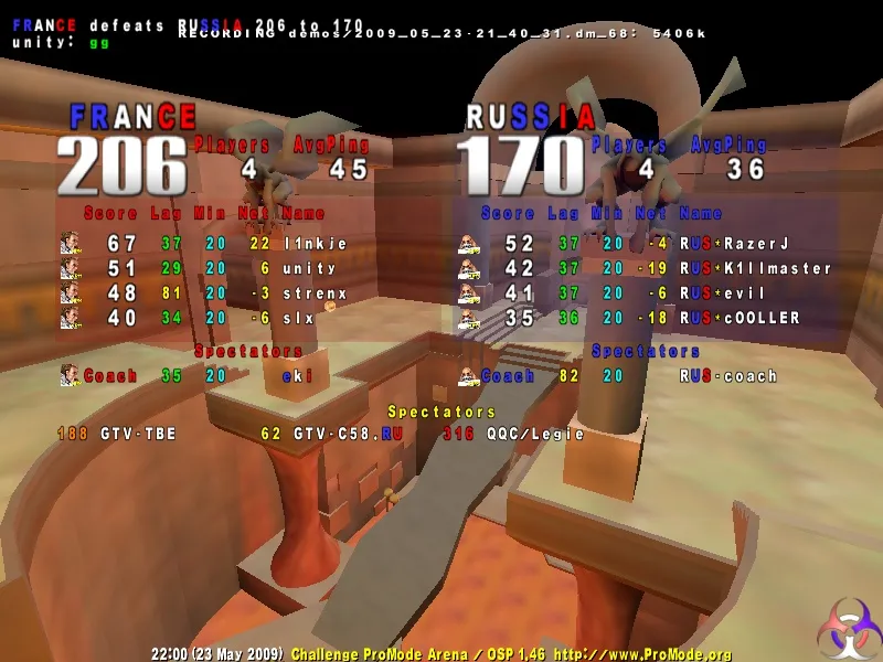Франция def Россия [2:1] (171:177 @ q3dm14tmp; 206:170 @ q3dm7; 177:166 @ pro-q3dm6)