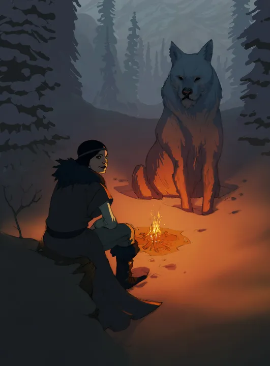 Девушка у лагерного костра
