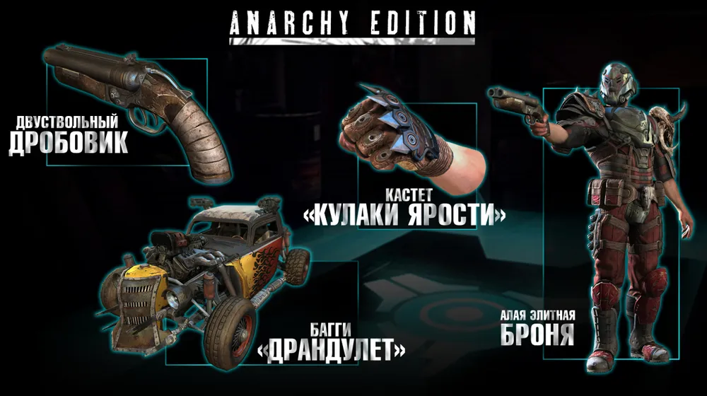 Помимо всего прочего, разработчики анонсировали также комплект оружия и других бонусов, входящих в состав расширенного издания игры, которое называется Anarchy Edition. Все плюшки вы можете наблюдать на данном скриншоте, а стоит или не стоит покупать расширенное издание игры, решать вам. На мой взгляд, набор довольно внушительный.