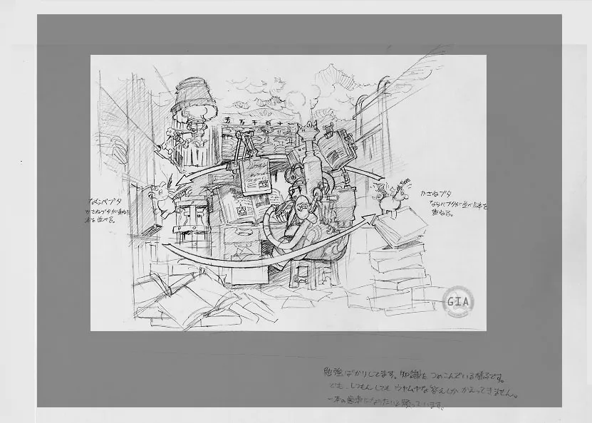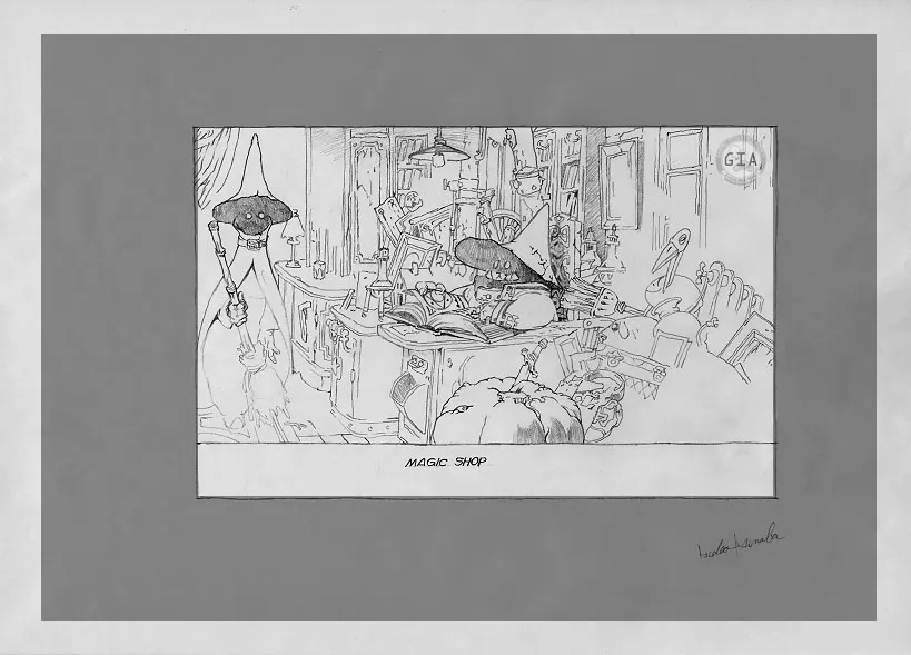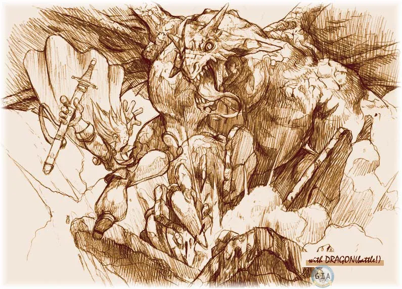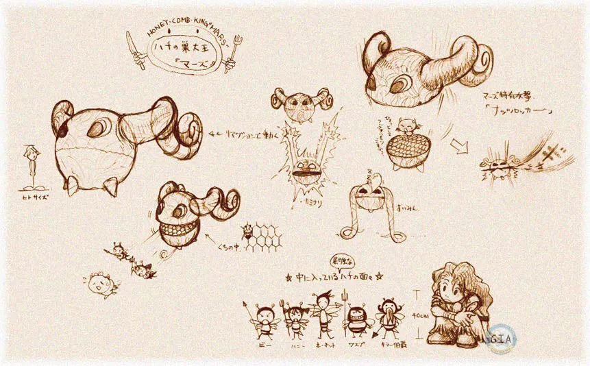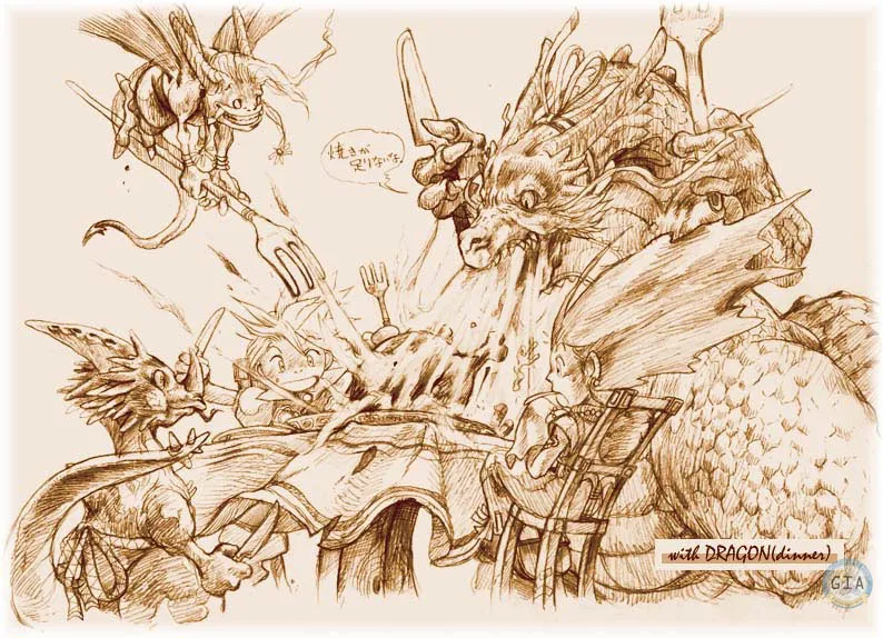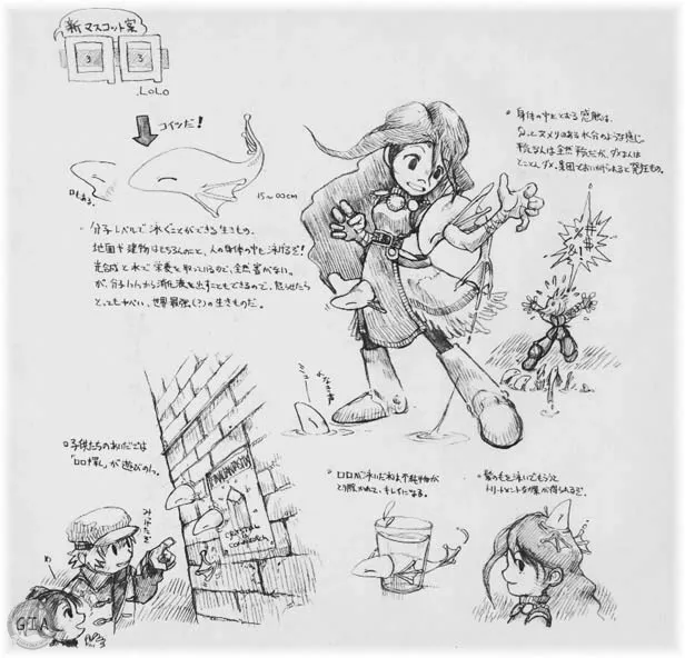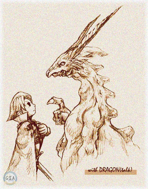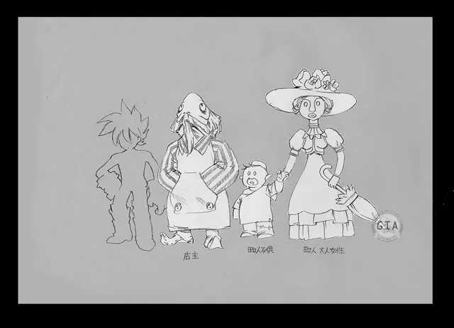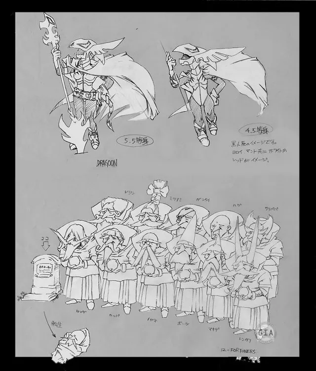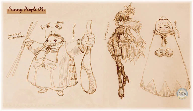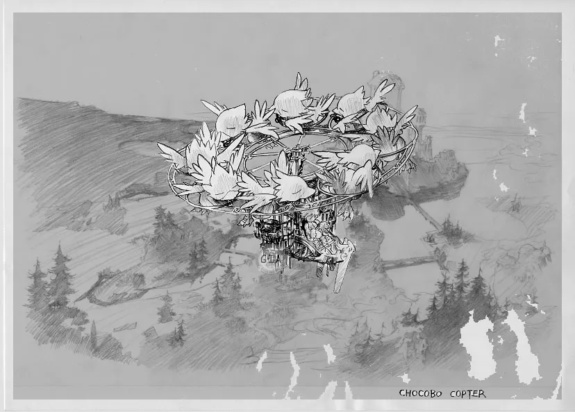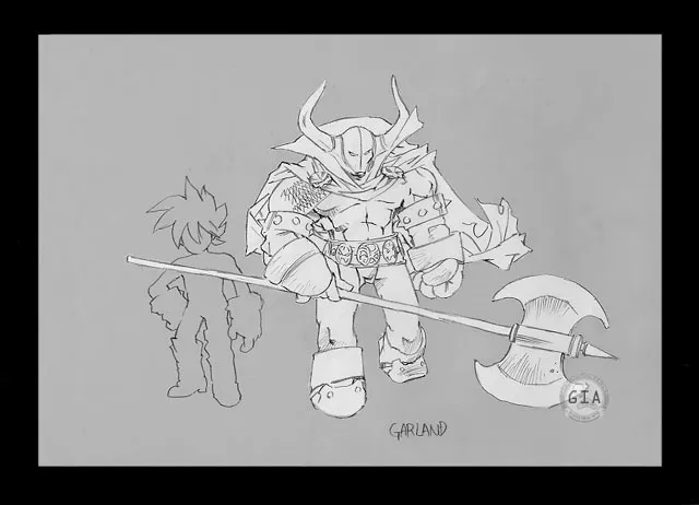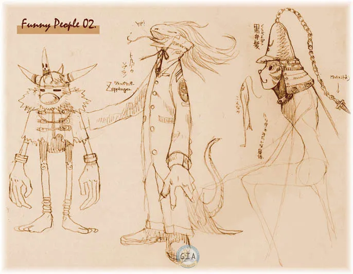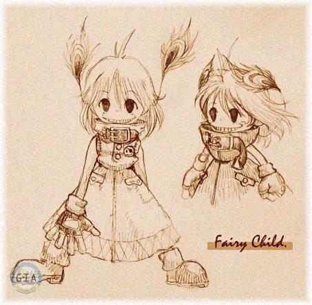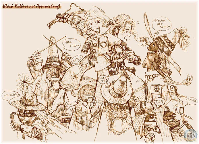 На этом рисунке Гарнет играет с призрачными рыбками, а бравый герой Зидан дает деру :) К сожалению до игры эта задумка так и не дошла.