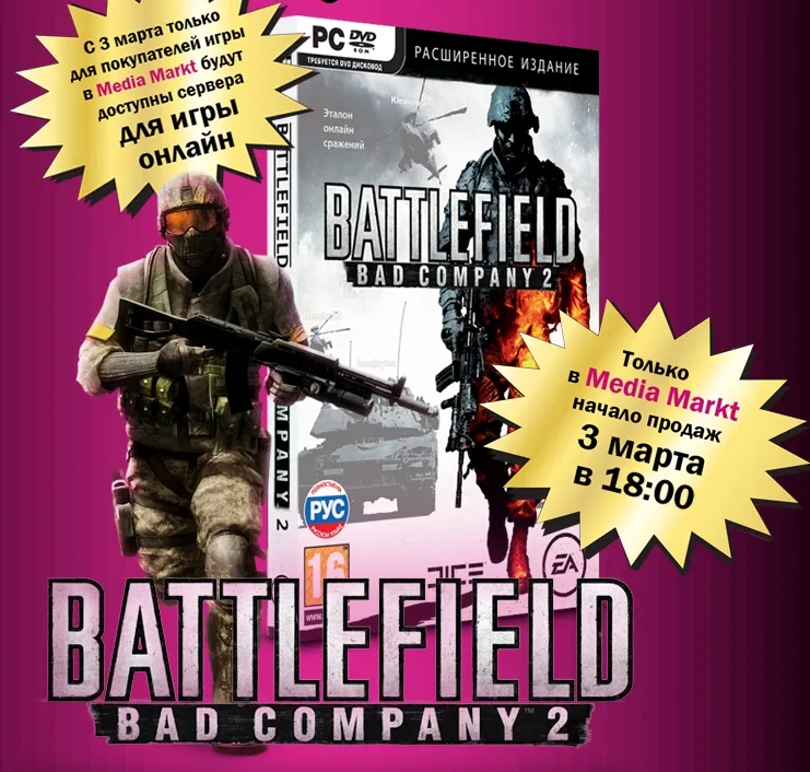 Как всем известно, ранний старт продаж Battlefield: Bad Company 2 был доступен для покупателей сети МедиаМаркт.