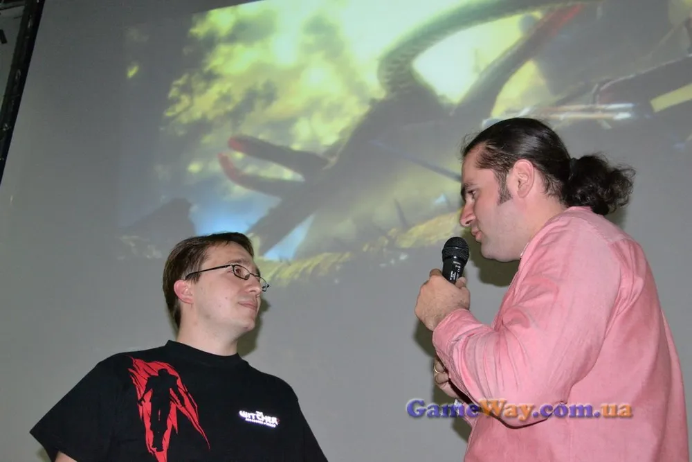 Главным событием вечера стала встреча фанов «Ведьмака» с разработчиком боевой системы игры Лукашем Щепанковски, а изюминкой дня - две очаровательные и игривые дамы, которые, безусловно, украсили собою все, что происходило на сцене и вне ее.