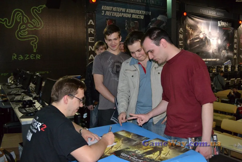 Под конец мероприятия начались продажи игры, за которой выстроилась длинная очередь. Диски и эксклюзивные подарочные брелки с «Ведьмаком» разошлись, как горячие пирожки. Параллельно с этим Лукаш Щепанковски раздавал автографы и общался с геймерами.