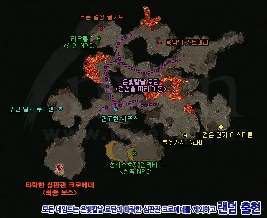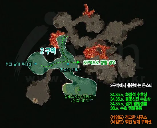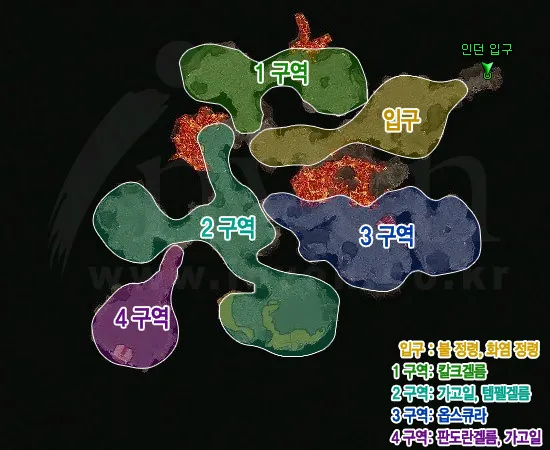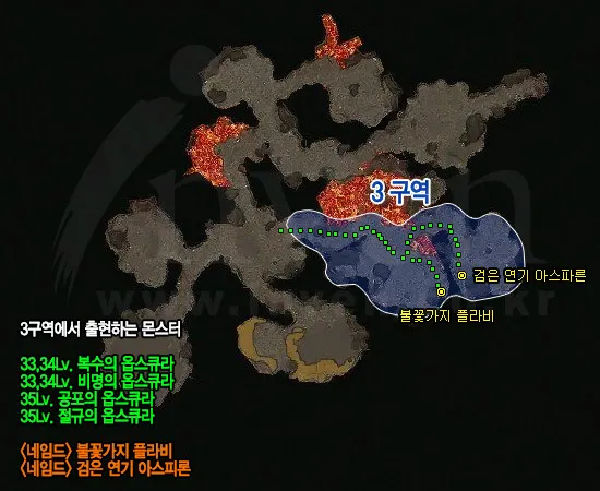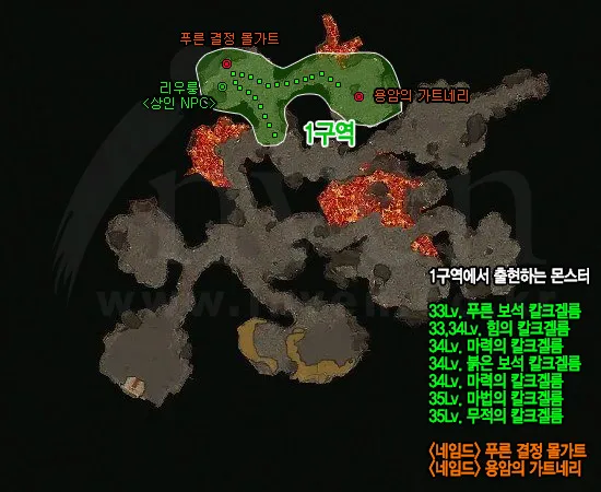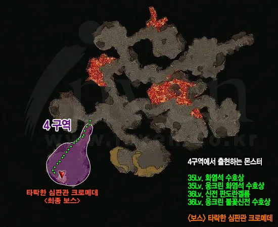 Представляет собой две большие комнаты с элитными огненными элементалями 33-35 уровня, а также двумя боссами, с которых могут падать зеленые части брони на 35 лвл.