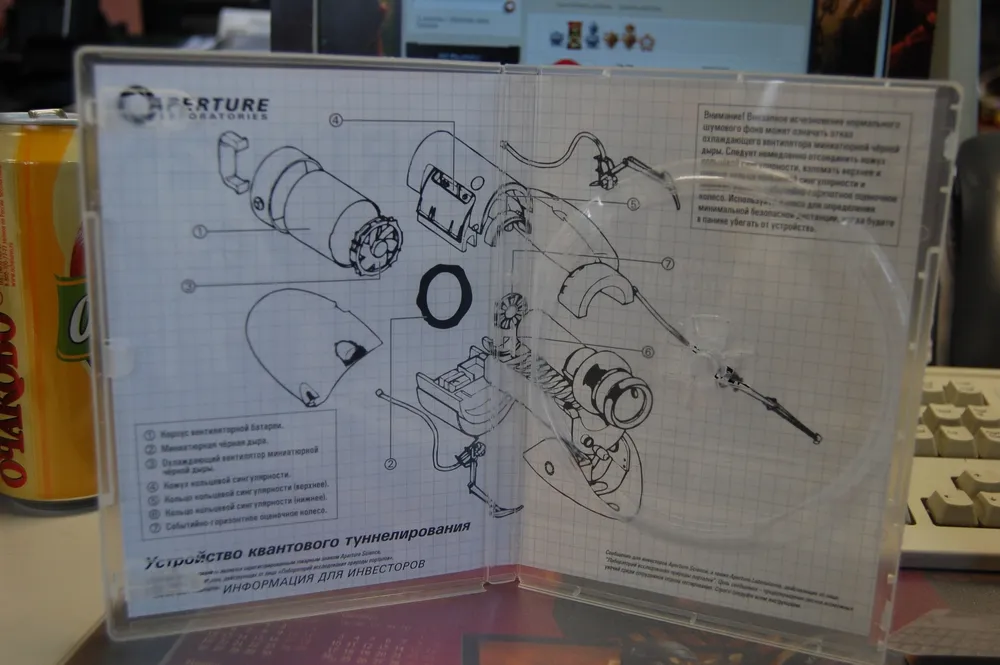 И внутренней стороне бокса. Кто первый соберёт портальную пушку, тот молодец :)