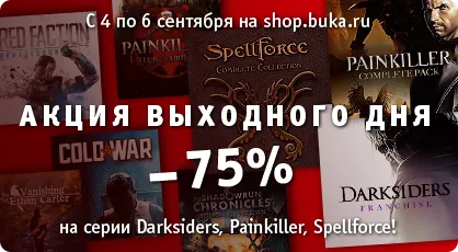 Новая супер распродажа! С 4 по 6 сентября в shop.buka.ru будет действовать скидка 75% на игры серий Darksiders, Painkiller и SpellForce. Обратите внимание, что в нашем магазине появились Complete Pack для этих серий, и они тоже участвуют в распродаже.