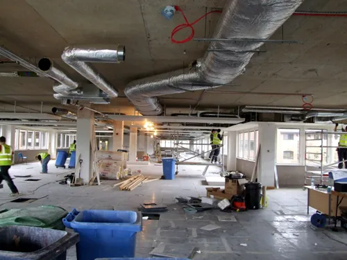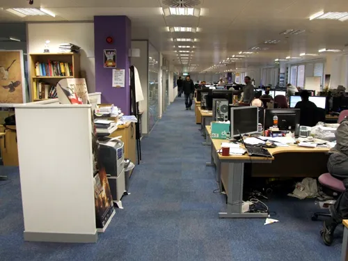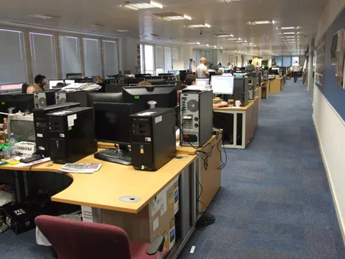 Первым делом, общий план офиса. На фотографии, на самом деле, не видно масштаба, но у нас сейчас работает около 160 человек, и мы занимаем весь этот этаж здания.