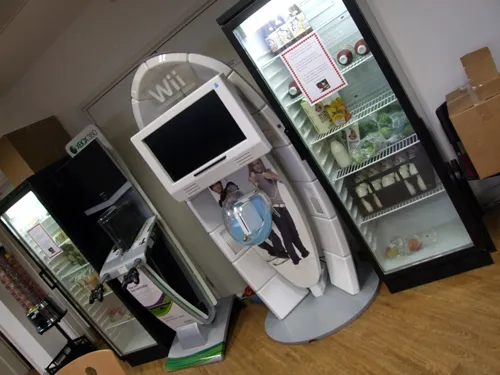 Как видно на этой фотографии, у нас есть приставки, на которых мы можем играть до упаду (нет, не надо искать в этом потаённых смыслов, нам просто нравятся игры!), и холодильники, полные питательных напитков, поддерживающих нас в течение дня.